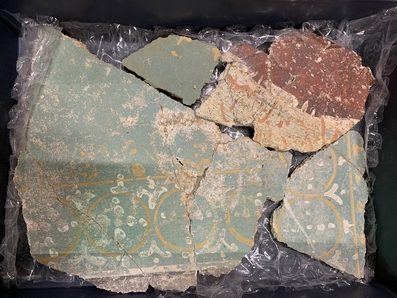 Ce sont des enduits qui sont restés intactes et sans étude depuis leur prélèvement pendant la fouille. Ainsi ils étaient encore emballés dans des papiers journaux des années 1969 et suivantes.