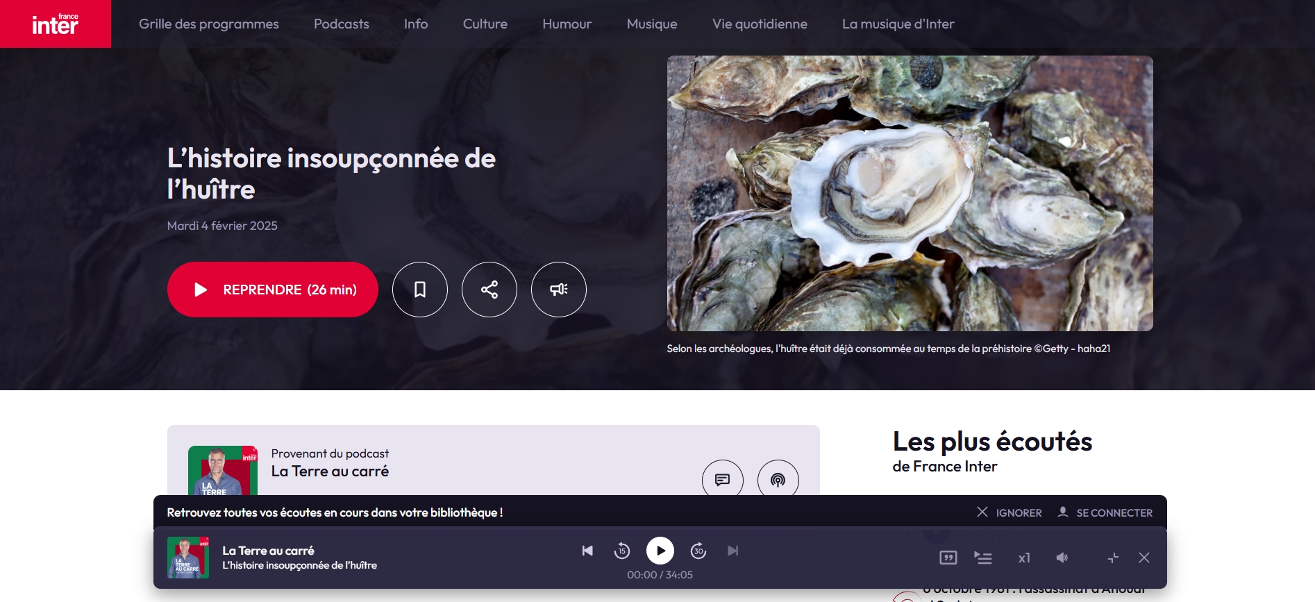 Mathieu Vidard : je parlais tout à l’heure des romains, est-ce qu’on on leur doit le come-back de l’huître un petit peu dans cette période de l’histoire